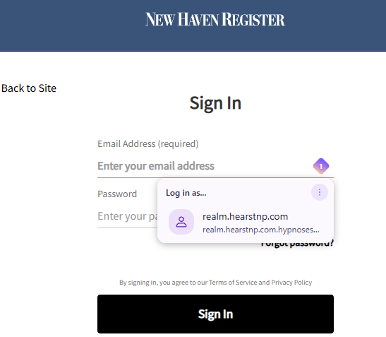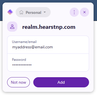 Once you've generated and selected a password for your new login, you will then be asked by Proton if you want to save the login credentials (note below that the realm.hearstnp.com URL is the website for registering with the New Haven Register) and, of course, you'll click ADD.