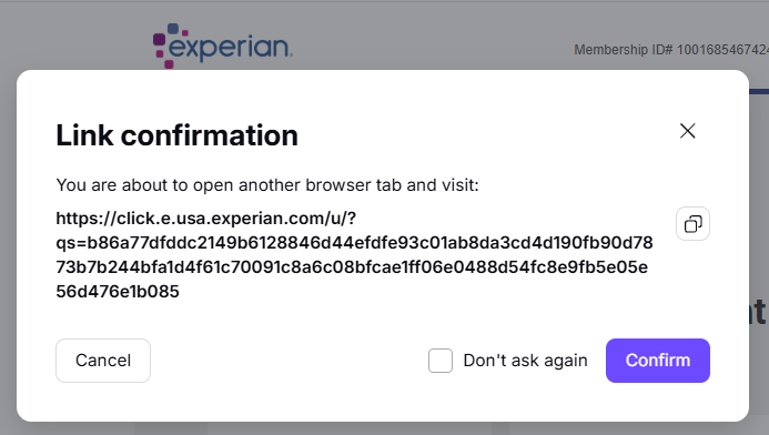 So, let's talk about links in emails, and how Proton provides a robust warning any time you click a link in a Proton email. As an example, I have my Proton email as my contact information for Experian, so when I got an email from them to review something, this is what came up when I clicked on that link: