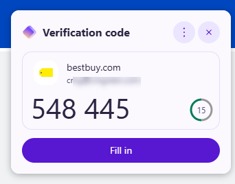 After I paste the key, that field reverts to the 6-digit 2FA code. But wait - it gets easier! Once you've integrated the secret key to the login, the next time you login and are prompted, Proton Pass will let you click and fill in the 2FA code! No extra app required!